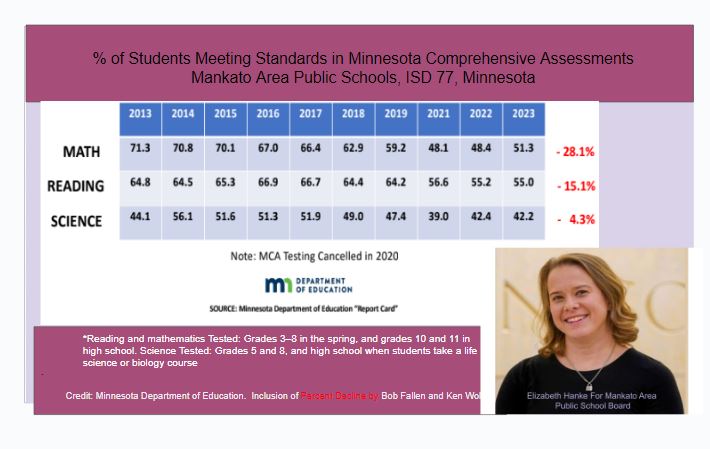 In the past decade, Minnesota’s academic performance has notably declined, raising alarm for educators, parents, and policymakers alike. According to the Minnesota Comprehensive Assessment (MCA) test scores, student proficiency has steadily decreased. In 2013, 71.3% of students met standards in Math, 64.8% in Reading, and 44.1% in Science. Fast forward to 2023, and those numbers have plummeted to 51.2% in Math, 55% in Reading, and 42.2% in Science. While the COVID-19 pandemic exacerbated educational challenges, this downward trend began long before the pandemic.